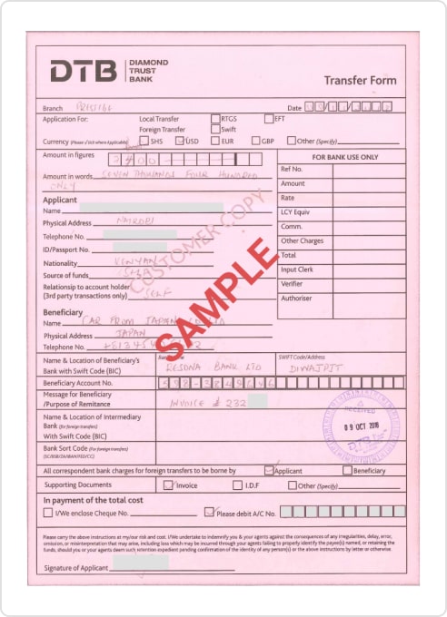 Receive the car at your port by using the documents we have sent.